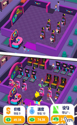 个性化装饰系统提供300+风格组件,从霓虹灯牌到复古海报都可自由组合。定期更新的主题装饰包让游戏厅持续保持新鲜感,玩家可打造蒸汽朋克风、赛博未来风等特色场馆吸引特定客群。